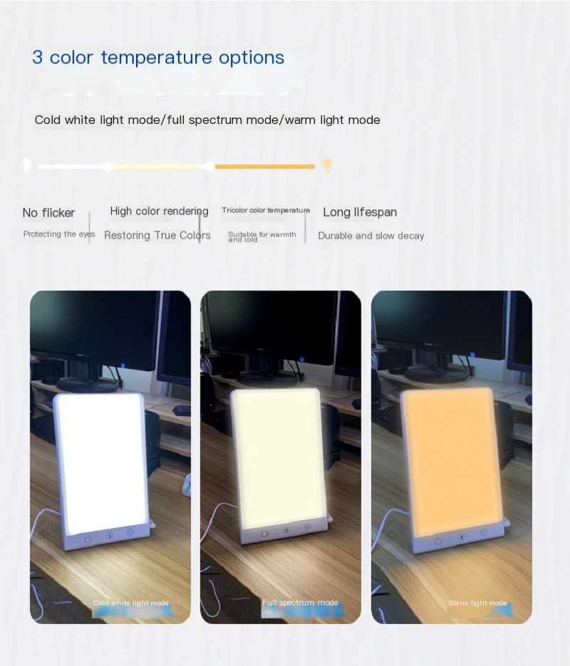 Featuring a dual-color light system, you can choose between a refreshing cold white or a comforting warm yellow light, allowing you to set the perfect scene for relaxation or focus. Whether you're battling the winter blues or looking for a calming atmosphere, this lamp is your ideal companion.